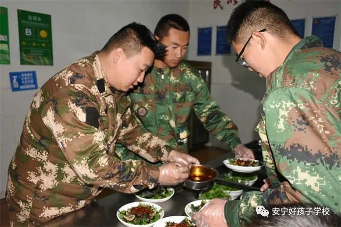 為了準備豐富的年夜飯,老師和同學們從上午就開始忙碌著,一起幫學校廚師們打下手。同學們有的摘菜洗菜、有的剝豆子......到了下午,一盤盤色香味俱全的菜肴就呈現(xiàn)在大家面前了,伴隨著隆隆的鞭炮聲,年夜飯開始了。