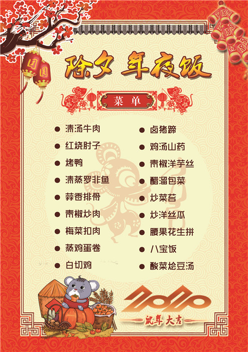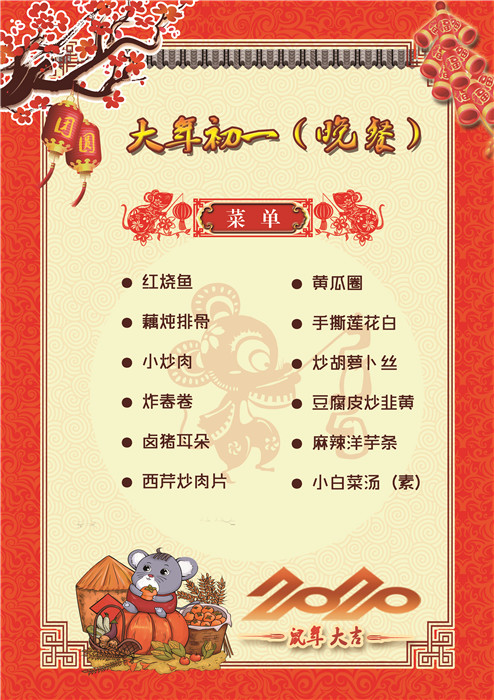 過(guò)年了 !孩子們吃什么?這是學(xué)校領(lǐng)導(dǎo)幾天來(lái)一直思考的問(wèn)題。經(jīng)過(guò)與學(xué)校營(yíng)養(yǎng)師、食堂廚師們多次商議后,本著營(yíng)養(yǎng)、健康、不浪費(fèi),又要保證孩子每餐都能吃上新鮮可口的飯菜,終于議定了菜單,現(xiàn)予以公布。祝孩子們新年快樂(lè)!祝全體家長(zhǎng)萬(wàn)事如意!