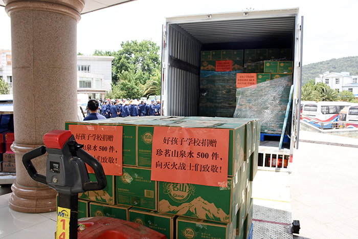 ——記好孩子學(xué)校捐贈500件珍茗山泉水助力青龍山火撲救
