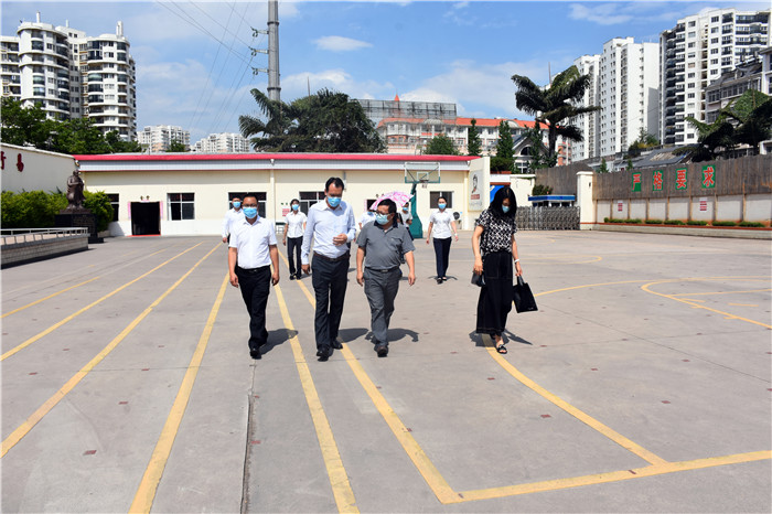 2020年5月18日下午,安寧市教體局教育科科長畢加昌率局機關干部王艷莉、安寧市疾控中心梁醫(yī)生、市基教中心李老師等蒞臨我校檢查指導疫情防控工作。