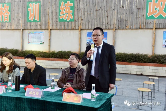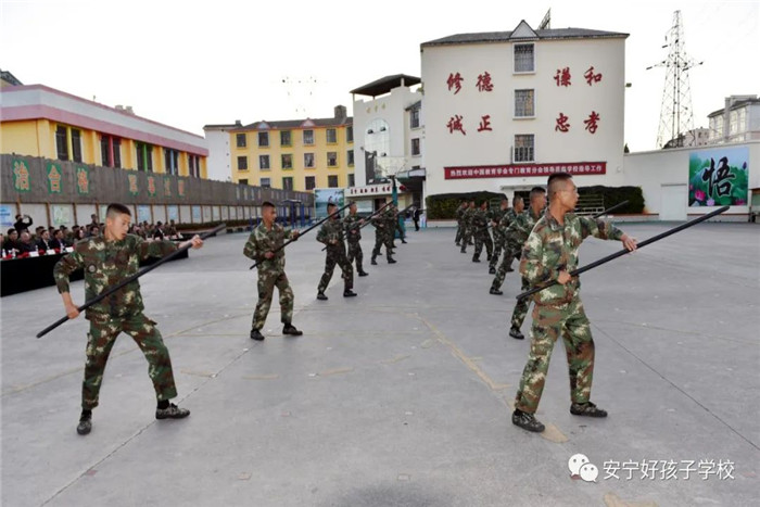 匯演尾聲,王理事長作了精彩點評:“今天我們來到好孩子學(xué)校進行調(diào)研,感受頗深。第一是熱情,此次調(diào)研不僅有我們省廳潘處長和市教體局劉副局長的一路陪伴,而且來到好孩子學(xué)校以后,學(xué)校的接待也很熱情,讓我們感受到了春城人民的淳樸好客!第二是贊嘆,好孩子學(xué)校辦學(xué)規(guī)范、理念獨特、措施有力、氛圍濃厚、成效明顯,校園干凈整潔,師生精神風(fēng)貌良好,人文關(guān)懷做得也很好,是個既嚴(yán)厲又溫暖的育人之地,給我們留下了非常好的印象。第三是驚訝,學(xué)校短短十年間,就改變了數(shù)千名孩子,真的讓我們非常驚訝。我不禁想起教育的一句話‘教育的特殊性,是為了人的成長來服務(wù),是一個生命影響一個生命的過程!煤⒆訉W(xué)校緊緊抓住做教育的這個真諦,嚴(yán)格訓(xùn)練、嚴(yán)格管理、嚴(yán)格要求,從心理學(xué)角度,認(rèn)真分析問題成因;從好習(xí)慣入手,狠抓良好習(xí)慣的養(yǎng)成教育?梢娫谂囵B(yǎng)孩子行為習(xí)慣、心理健康上下了大功夫,才能使那么多孩子回到了正常的主流生活中,你們?yōu)楫?dāng)?shù)厣鐣C合治理做出了很大貢獻。今天孩子們的表演也非常精彩,足以看出日常的訓(xùn)練有多么規(guī)范,也可見學(xué)校是多么注重孩子們的興趣培養(yǎng)與激發(fā)?傊煌鞔诵!”
