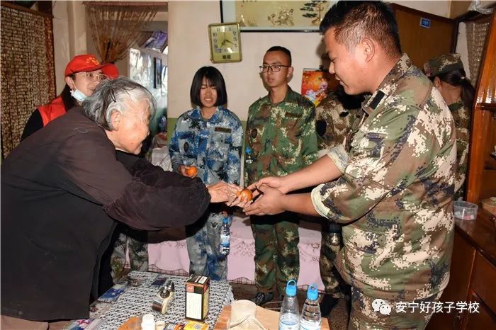師生們圍坐在朱奶奶身旁拉起了家常,噓寒問暖,朱奶奶也饒有興致地說著自己的近況,不時感謝著大家給她送去的生活用品(大米),也表示自己雖然一個人生活,但也一定會好好照顧自己,讓大家別擔(dān)心。但說起往事,回憶起自己天各一方的家人時,朱奶奶臉上難掩憂傷。我們在感嘆她頑強(qiáng)的生活能力時,也對她的遭遇無限心疼。交談間,朱奶奶還不時把桌上的水果、糖果等小零食塞到師生手中,頻頻說著“孩子們,快吃”。慈愛的話語,溫暖的交流,一次次拉近了師生與朱奶奶之間的距離。