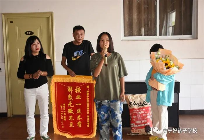 2021年8月17日—8月21日,在我校畢業(yè)生胡瑩、李學(xué)玟同學(xué)的出營儀式上,家長們分別將繡有“感恩遇見,最美老師”、“授業(yè)一絲不茍,解惑無微不至”字樣的錦旗贈給學(xué)校。這兩面沉甸甸的錦旗,承載著家長對學(xué)校和老師樸實而厚重的謝意。