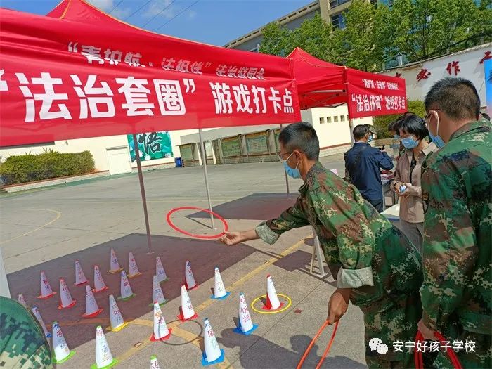 之后開展了以“未保知多少”、“法治套圈”、“法治拼詞”、“法平如水”等多項(xiàng)趣味游園活動(dòng)。同學(xué)們熱情高漲,積極參與其中,每個(gè)法治游戲打卡點(diǎn)都熱鬧非凡。“法平如水”游戲中,同學(xué)們很快掌握了乒乓球運(yùn)送技巧,快速過關(guān);“法治拼詞”也激起了同學(xué)們的挑戰(zhàn)欲,從眾多的字塊中,他們眼疾手快地把一個(gè)個(gè)法制成語拼湊成功;“未保知多少”也難不倒同學(xué)們,大家運(yùn)用日常法律課堂所學(xué),快速準(zhǔn)確作答;是時(shí)候表演真正的技術(shù)了,“法治套圈”更是激起了大家的勝負(fù)欲,當(dāng)老師發(fā)出套 “違法行為”或“不良行為”的口令時(shí),同學(xué)們就迫不及待地瞄準(zhǔn)、套中,一氣呵成。