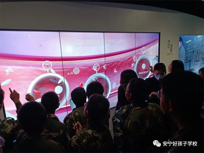 研學(xué)第二站——云南白藥體驗館,通過觀看視頻體會云南白藥在立足當(dāng)下、展望未來中,如何守護生命與健康。并通過親身感受,體驗高科技、智能化在日常生活中帶來的便捷、神奇與魅力。