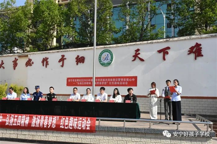青春逢盛世,奮斗正當時。為深入學習貫徹黨的二十大精神,激勵廣大青年傳承和發(fā)揚“五四”精神,進一步增強青年榮譽感和使命感, 2023年4月28日,安寧市光明社區(qū)團支部與我校聯合開展“黨在我心中——弘揚五四精神 激揚青春夢想” 紀念“五四”運動 104 周年紅色趣味運動會。