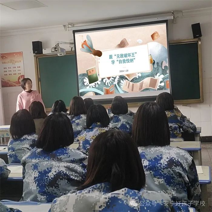 課程伊始,趙老師播放了動(dòng)畫(huà)電影《無(wú)敵破壞王》,以電影主人公的經(jīng)歷為參照,引導(dǎo)同學(xué)們看到自我悅納要經(jīng)過(guò)歷程,并詳細(xì)講解了不同階段對(duì)應(yīng)的不同挑戰(zhàn)。
