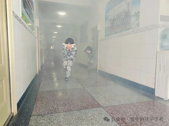 隨著警報聲響起,全體學(xué)生在各班老師的正確引領(lǐng)下,用濕毛巾捂住口鼻,彎腰俯身,按演練前規(guī)劃的消防安全逃生路線迅速向安全區(qū)域有序撤離。到達(dá)指定地點后,各班班長立刻向現(xiàn)場指揮員報告人數(shù),確保所有學(xué)生都已安全撤離。整個逃生演練過程快速有序,全體師生完成逃離僅用了40秒。