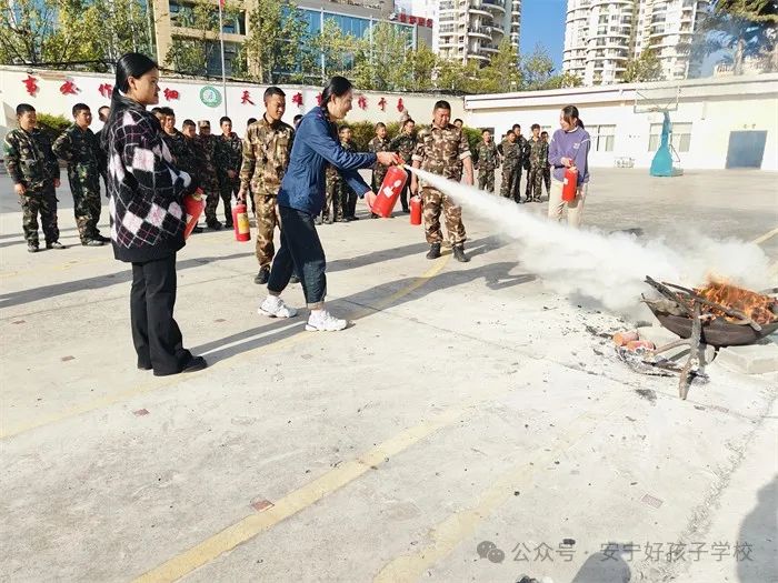 隨后,進(jìn)行了撲救演練。操場上的木材點燃后,火苗迅速變成了熊熊大火,張老師為師生們現(xiàn)場演示滅火設(shè)備(滅火器、高壓水槍)的使用方法,并一一指導(dǎo)大家親自操作。演練結(jié)束,張老師對本次活動進(jìn)行了全面的點評和總結(jié),進(jìn)一步強(qiáng)調(diào)了安全逃生和火災(zāi)撲救中應(yīng)注意的問題。