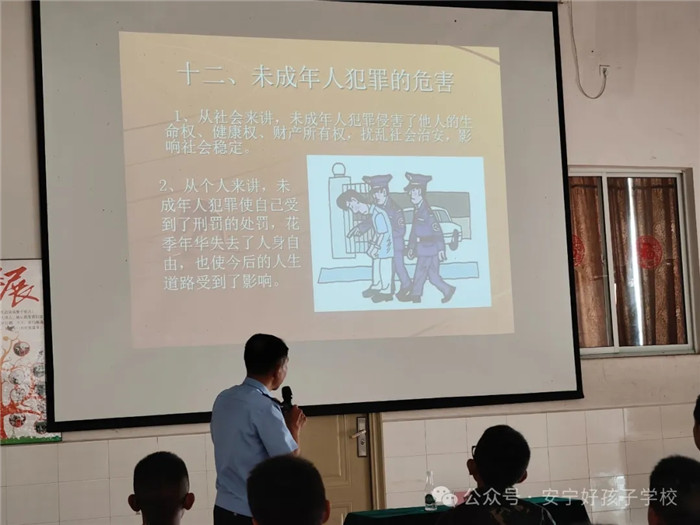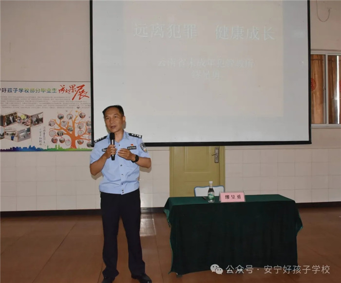 為進一步強化未成年人法治宣傳教育的針對性、實效性,切實增強青少年的法律意識和自我保護能力,著力打造平安、文明、和諧的校園環(huán)境。2024年4月12日,我校特邀云南省未成年犯管教所繆呈勇警官到校為全體師生開展了一堂以“遠離犯罪 健康成長”為主題的法治教育講座。
