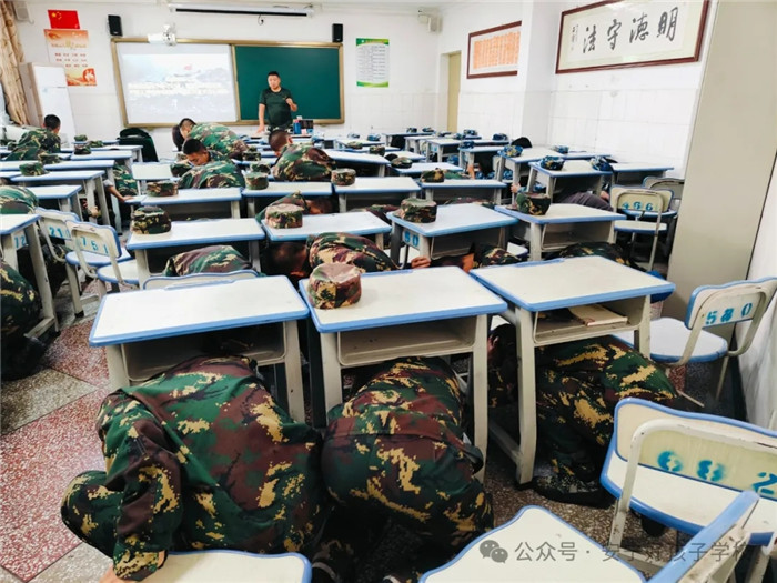 緊接著,進行避震和逃生演練。當?shù)谝宦暰瘓筲忢懫,同學們立即采取緊急避震措施,護住頭部和頸部,躲到課桌下面,降低身體重心,確保自身安全,整個過程快速、有序。