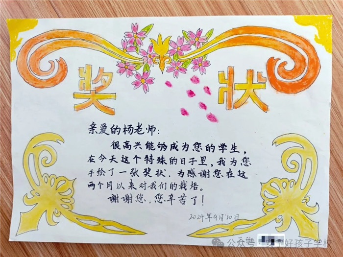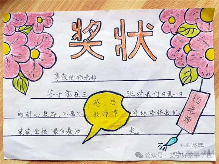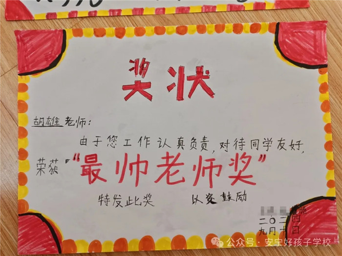 一朝沐杏雨,一生念師恩。孩子們在創(chuàng)意獎狀制作時,各個認真、細致、投入,每一筆都勾勒出了他們心中既親切又威嚴的老師形象。那一句句風趣幽默飽含情意的話語,是老師們憑實力和魅力圈粉的結(jié)果。對老師來說,這一張張獎狀,就是最好的禮物和最大的褒獎,亦是前行最大的動力!一路走來,學校全體教師以盡職盡責詮釋責任,以拼搏奮斗書寫擔當,以敬業(yè)奉獻彰顯情懷。
