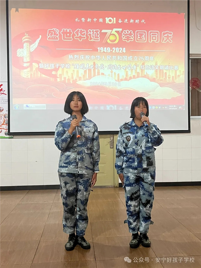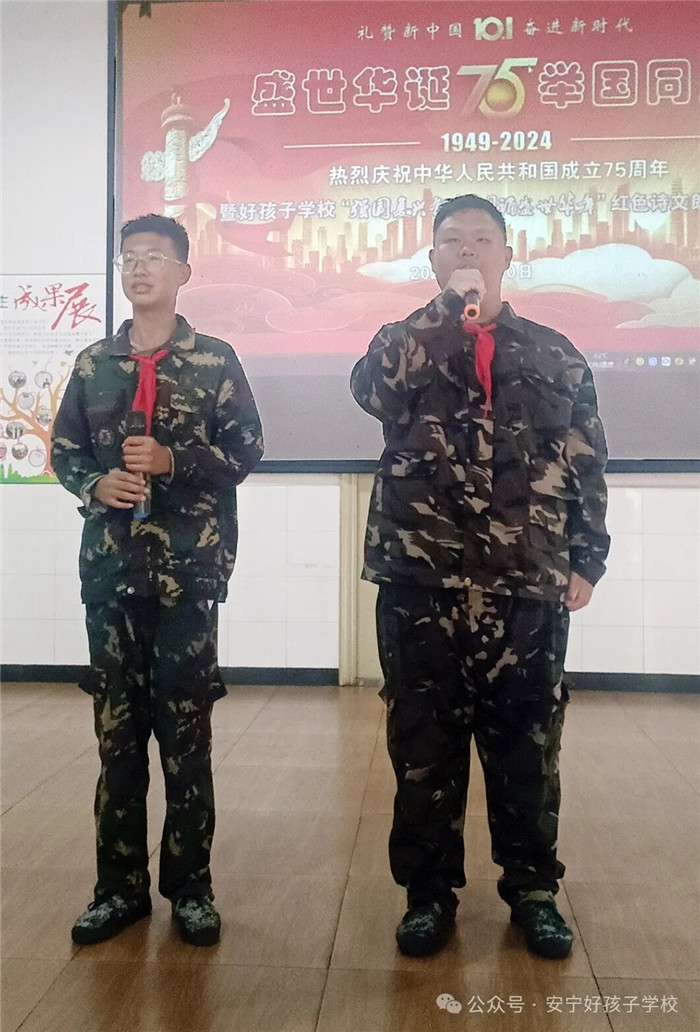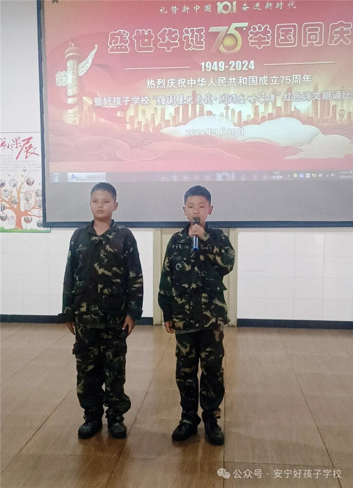 聆聽紅色之聲,感受誦讀之美。本次比賽既是向祖國(guó)母親75周年華誕的一次獻(xiàn)禮,也是一次心靈的洗禮,更是對(duì)歷史的傳承和對(duì)文化的弘揚(yáng),它深深地喚起了我們的民族自豪感和責(zé)任感。青春中國(guó),步履不息。新時(shí)代同心逐夢(mèng),新征程凱歌以行。藍(lán)圖已經(jīng)繪就,奮進(jìn)正當(dāng)其時(shí)。好孩子學(xué)校將以此次活動(dòng)為契機(jī),用實(shí)際行動(dòng)詮釋教育情懷,培育愛黨愛國(guó)初心,以更加飽滿的熱情秉承“改變一個(gè)孩子,幸福一個(gè)家庭,和諧一個(gè)社會(huì)”的宗旨,踐行“尊重、激勵(lì)、鞭策、喚醒”的教育理念,加滿油,把穩(wěn)舵,鼓足勁,用“奮斗筆”擎畫“幸福卷”,種好專門教育的責(zé)任田,幫助更多的孩子健康成長(zhǎng),助力教育共富,共同書寫新時(shí)代的輝煌篇章。
