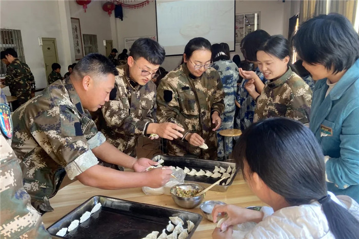 多功能食堂里,燈光溫暖,人影忙碌,氣氛熱烈,歡聲笑語交織,大家都在熱火朝天地為包餃子做準(zhǔn)備。餃子餡的種類豐富多樣,韭菜的清香、芹菜的爽脆、肉餡的醇厚,每一種餡料都在撩動著大家的味蕾。