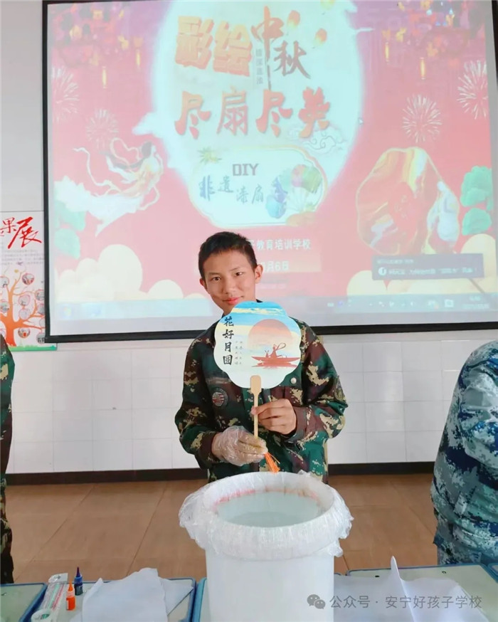 非遺文化是中華文脈的重要載體,活動現(xiàn)場,漆扇制作體驗區(qū)吸引了眾多同學駐足。在老師的耐心指導下,同學們親手上漆、繪制,大家充分發(fā)揮創(chuàng)意,將中秋元素融入筆尖,月兔搗藥、桂樹飄香、嫦娥奔月等經(jīng)典圖案躍然扇面。指尖流轉(zhuǎn)間,同學們觸摸到了傳統(tǒng)文化的溫度,讓非遺之美在校園里悄然傳承。